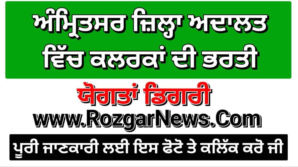 District and Sessions Judge, Amritsar (Punjab)Clerk (54 Post) Recruitment 2024Short Details of Notificationwww.RozgarNews.Com