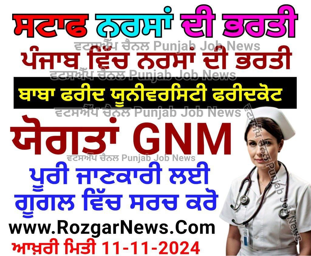 Baba Farid University of Health Sciences, Faridkot (PB)Baba Farid Uni Staff Nurse Recruitment 2024www.RozgarNews.Com
