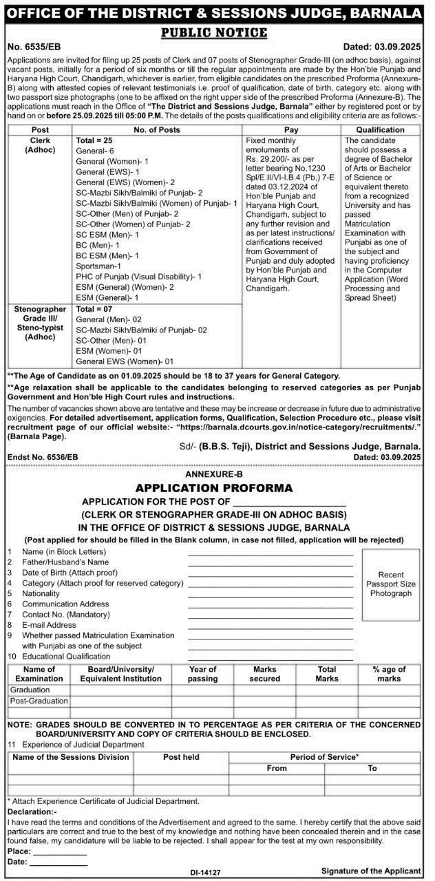 Barnala Court Clerks & Stenographers Recruitment 2025