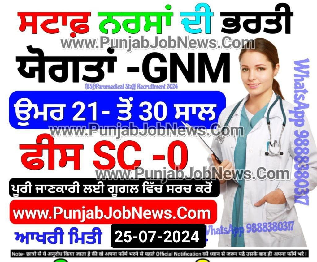 Border Security Force (BSF)Paramedical Staff Recruitment 2024Short Details of Advt Notification |