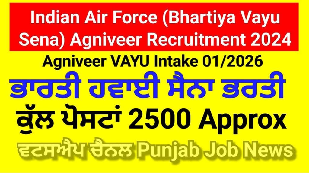 Air Force Agniveer 01/2026 Recruitment 2024 : Here You Can Get All The Current And Upcoming Information Related To Air Force Agniveer 01/2026. Like Recruitment News, Air Force Agniveer 01/2026 Total Posts, Important Dates, Application Fees, Air Force Agniveer 01/2026 Qualification, Air Force Agniveer Age Limit, Air Force Agniveer 01/2026 Recruitment 2024 Selection Process, Salary, Syllabus, Air Force Agniveer 01/2026 Exam Pattern, Exam Date, Air Force Agniveer Admit Card, Answer Key, Merit List, Result, Air Force Agniveer 01/2026 Question Paper and More.