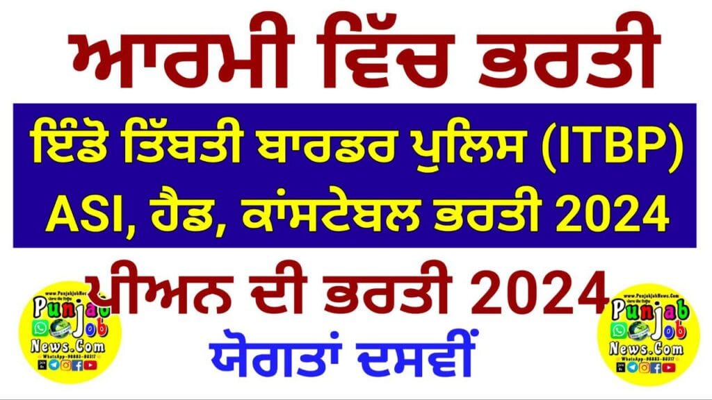Indo Tibetan Border Police (ITBP)ASI, HC, Constable Recruitment 2024Short Details of Advt Notificationwww.RozgarNews.Com