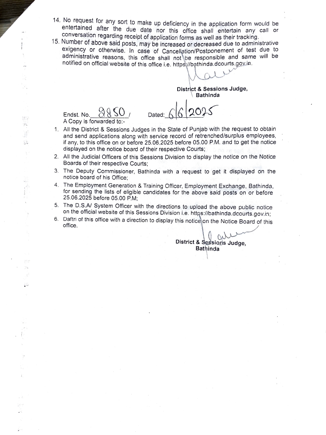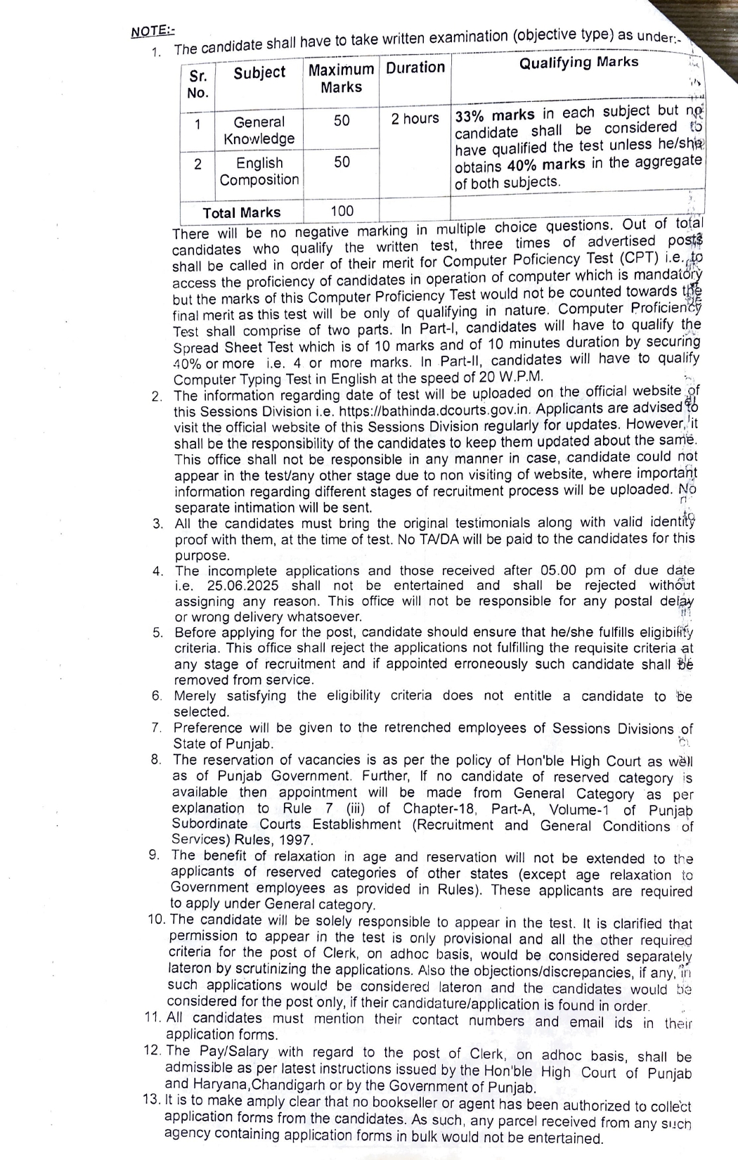 Punjab Clerk Recruitment 2025District and Sessions Judge BathindaClerk Recruitment 2025Short Details Of Advt Notificationwww.RozgarNews.Com