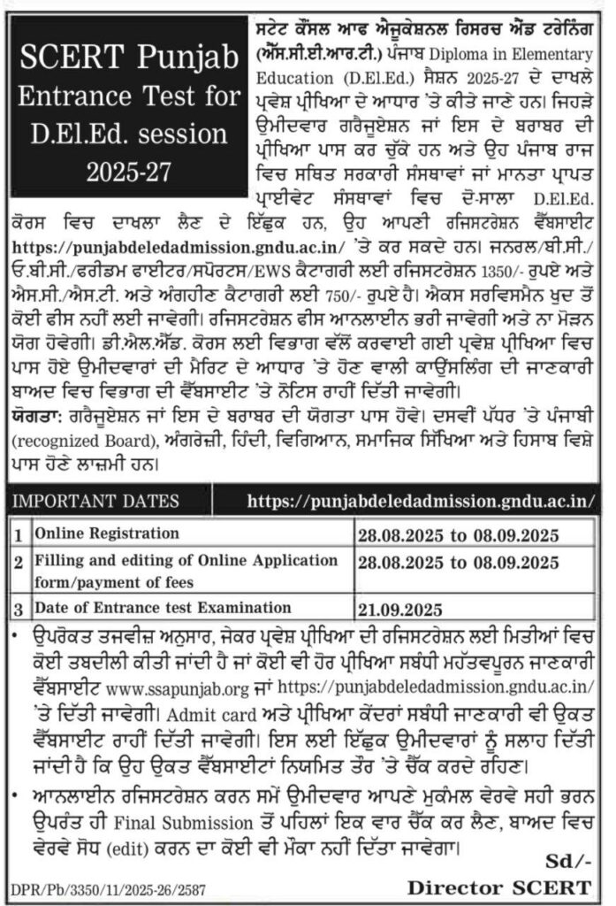 - There is no age limit for students taking admission to D.El.Ed. Course.
