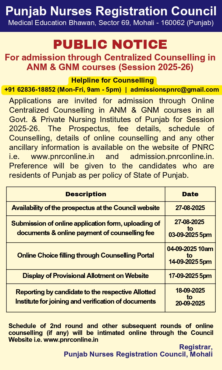 Provisional Merit List of candidates applied for Counselling of GNM Course | Click Here |