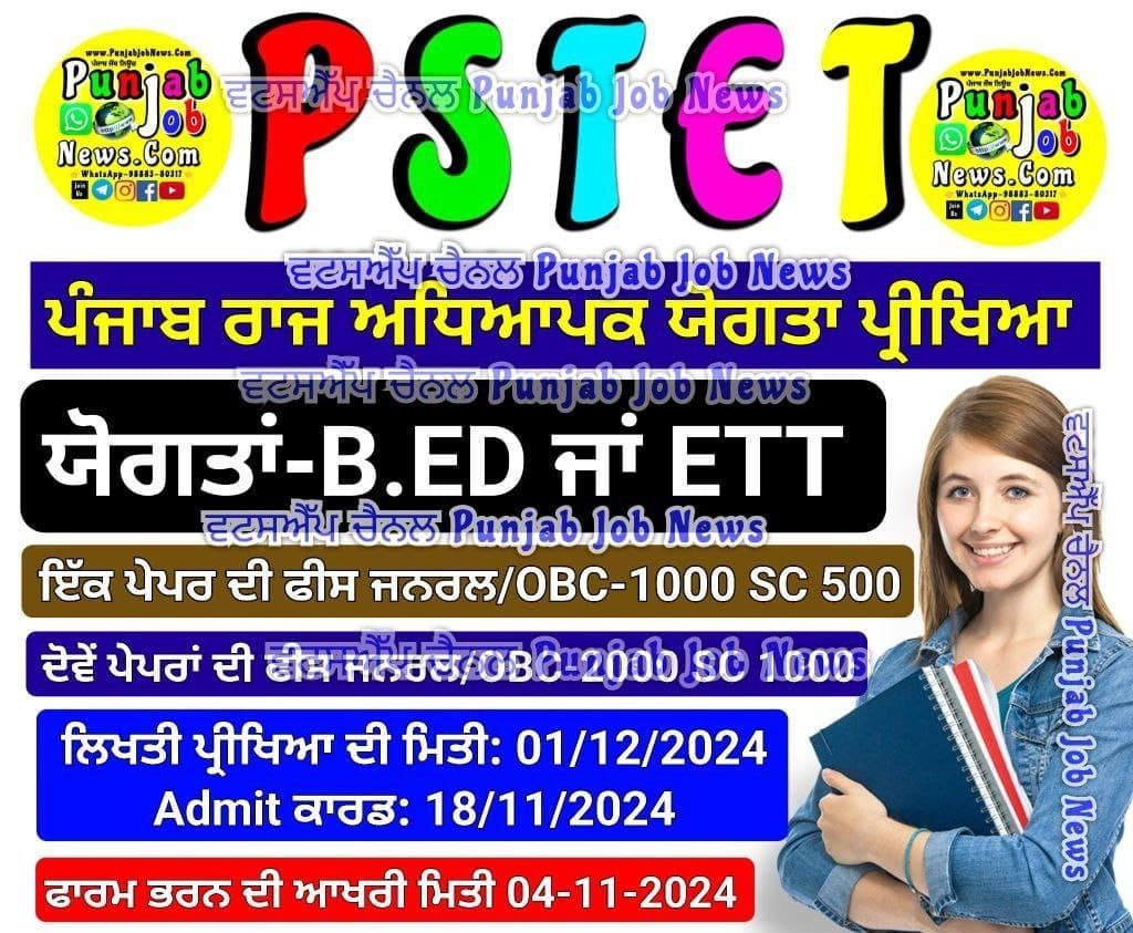 Punjab State Educational Research and Training Council (SCERT), PunjabPunjab State Teacher Eligibility Test (PSTET) 2024PSTET 2024 Short Details of Advt Notificationwww.RozgarNews.Com