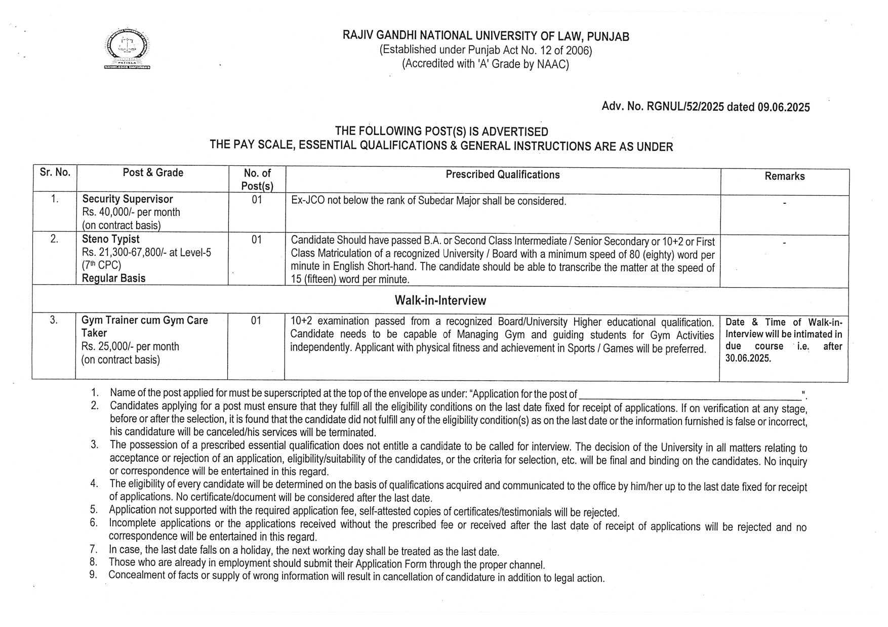 passed from a recogrized Board university Higher educational qualification Candidate needs to be capable of Managing Gym and guiding students for Gym Activities independently. Applicant with physical fitness and achievement in Sports/