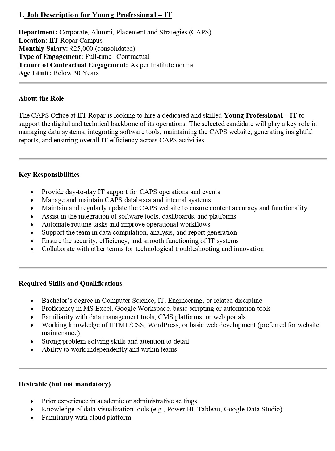 Indian Institute Of Technology–Ropar (IIT–Ropar)Young Professional – IT ,Young Professional -Web/Graphics Designing Associate- Placement Liaison posts 2025 WALK IN INTERVIEW Short Details www.RozgarNews.Com
