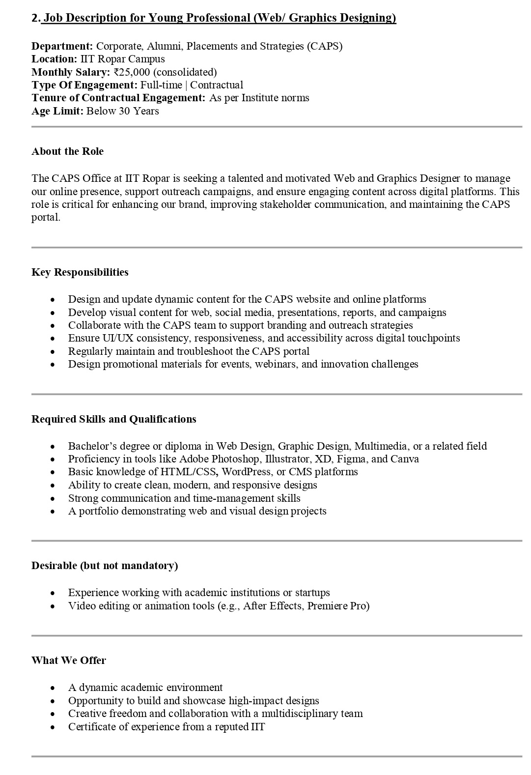 - Young Professional (Web/ Graphics Designing) Age Limit: Below 30 Years